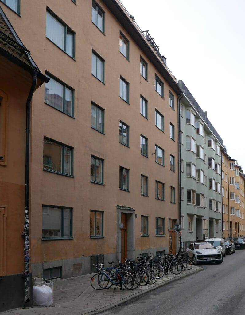 Det ser inte så märkvärdigt ut. Ganska alldaglig funkis med drag av kvardröjande klassicism ritat av arkitekten Gustav Laurelius. Men på ett sätt är det speciellt. Enligt Henrik Nerlund, som forskar i saken, är det ett av de sista husen som byggdes enligt Lindhagenplanen.