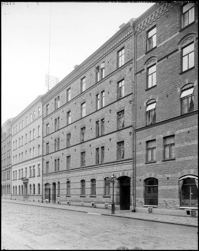 Lägenheterna samlas runt ett trapphus av begränsad storlek. De som ligger mot gatan har hälften av boningsrummen åt tyst sida för att uppfylla gränsvärdena för trafikljud. Mot gården har huset en flygel som innehåller fyra mindre lägenheter i de lägre våningarna och två större lägenheter i de övre planen för att få en gynnsam hushållsammansättning.