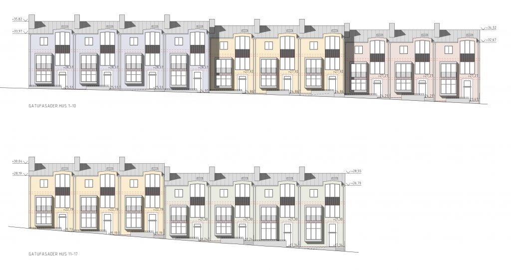 Höjdskillnaden mellan gata och baksida varierar mellan 3