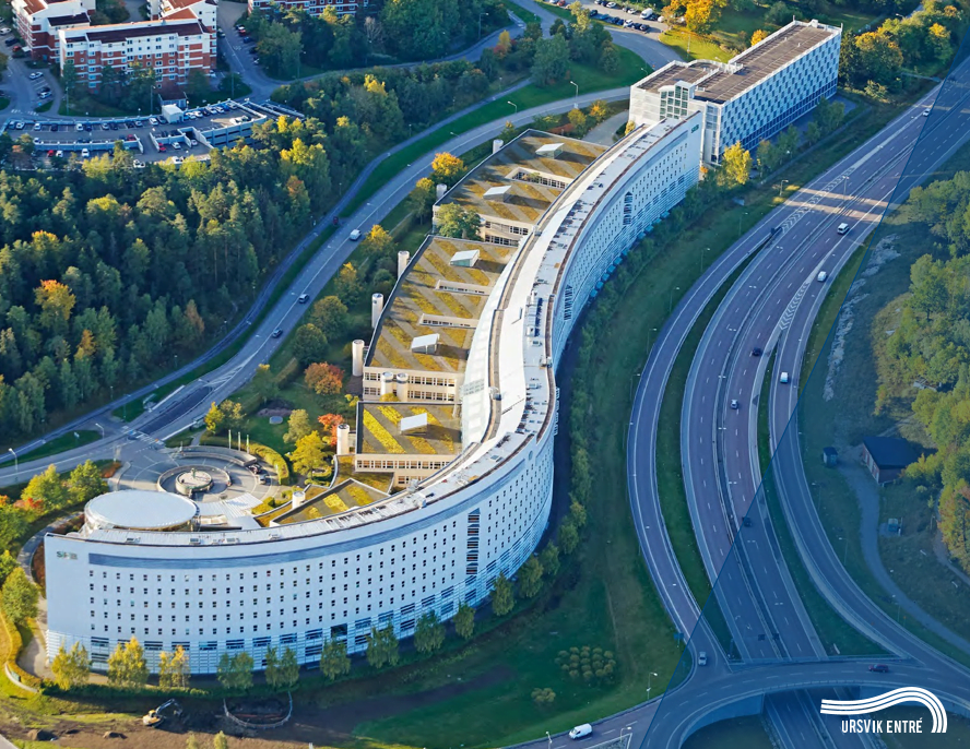 Radhusen bildar med sina svagt svängda fasader, ett intimt och välkomnande stadsrum. För den som kommer norrifrån blir kontrasten med flerbostadshusen en angenäm överraskning. För den som kommer söderifrån blir det en bekväm väg in i det nya Högsätra från skogen uppe på höjden.