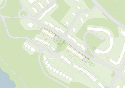 Stockholms stads planprogram för västra delen av Nockebyhov fastställdes 2013. Där utpekades marken mellan Tyska Bottens Väg och kvarteren Ceremonimästaren och Storsiren i Mälarblick som lämplig för radhus. Vi gjorde en markanvisningsansökan för Småa AB, och vårt förslag låg till grund för den detaljplan som vann laga kraft 2020. Därefter har vi projekterat de 20 radhus som färdigställts av Besqab under våren 2025.