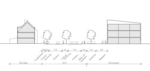 Förslaget innebär en blandstad i ytterstaden där småföretag och bostäder lever sida vid sida och på så sätt kan dra nytta av varandra med:
