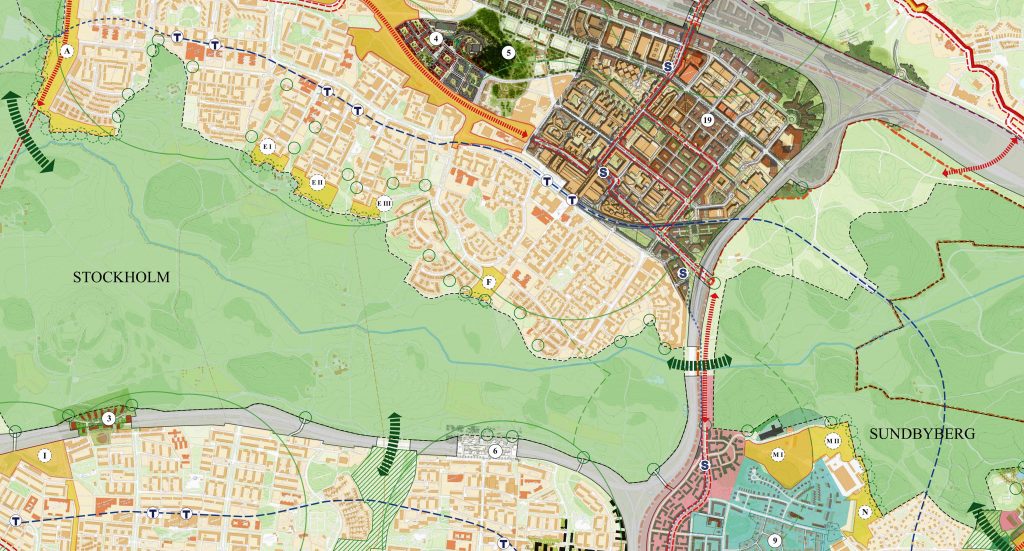 Där denna passerar från Ursvik till Kista längs Kymlingelänken bildas Järvas motsvarighet till Slussen: en plats där stadslivet kan ta sig mellan de norra och södra stadsdelarna.