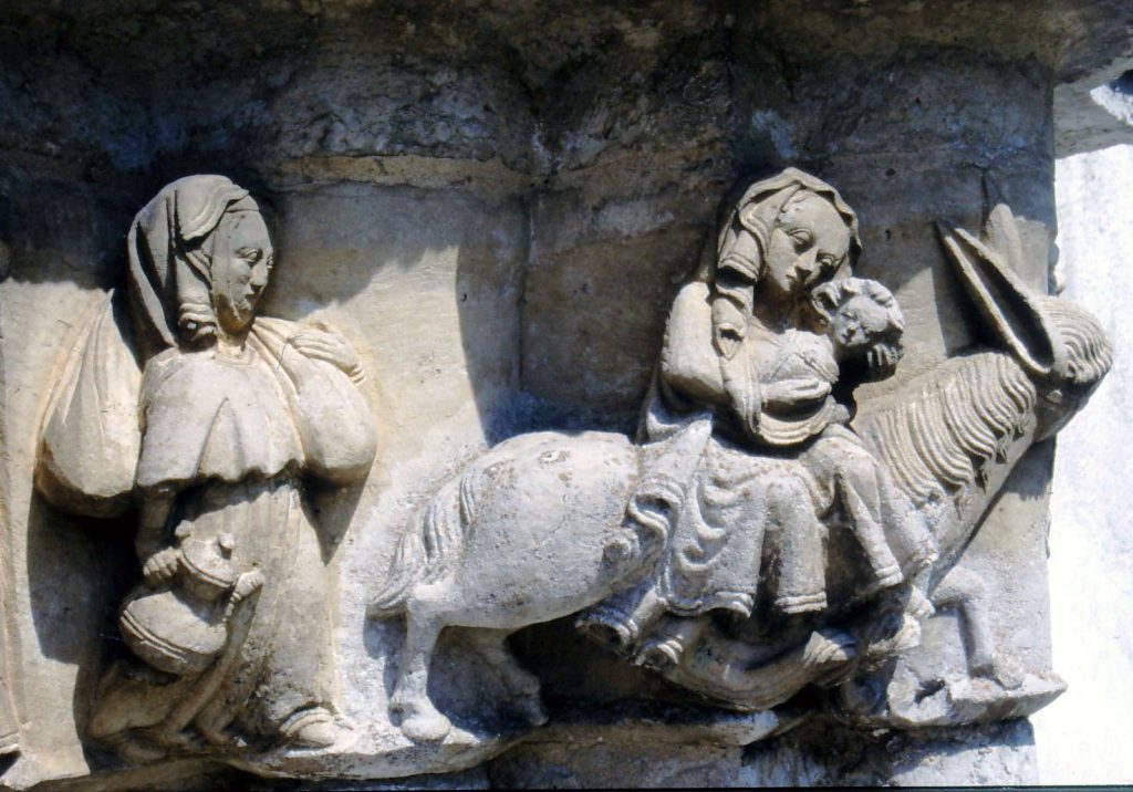 Skulptur från 1300-talet på Martebo kyrka på Gotland. Den föreställer Josef