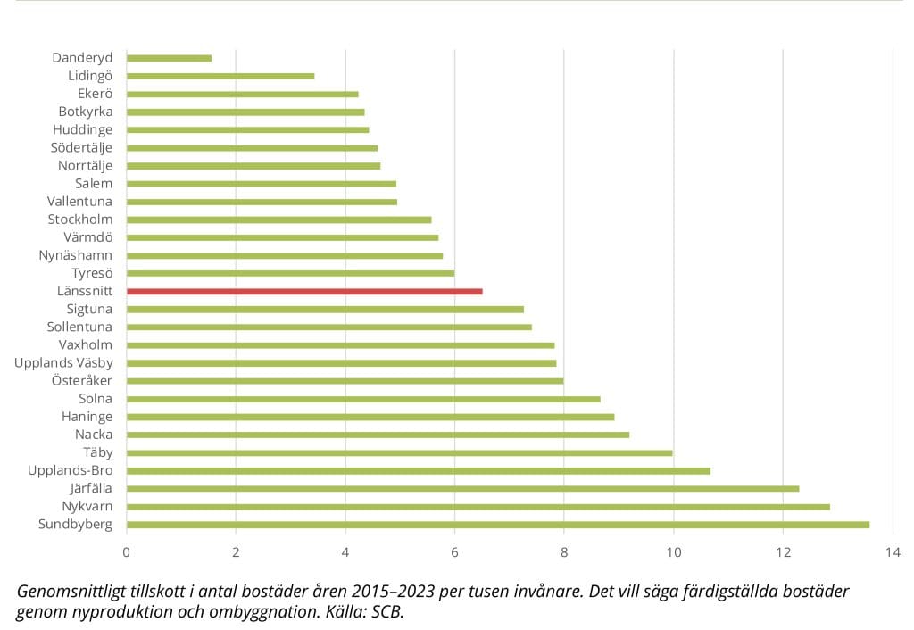 Det är inte bostadsbrist i Sverige. I landet som helhet är antalet bostäder per invånare sedan länge konstant. På flera håll, exempelvis Umeå, ökar det till och med. Bostadsbristen är ett problem i storstäderna. Inlägget från kommunpolitikerna i Danderyd och Lidingö visar varför.